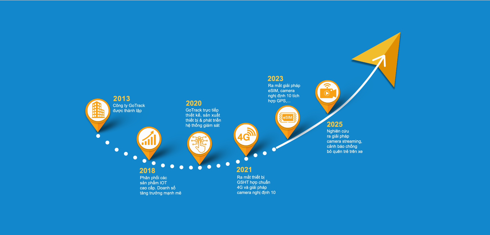Chúng tôi giúp mọi người theo dõi tài sản, phương tiện dễ dàng. Giúp ngành vận tải phát triển hơn thông qua việc tối ưu việc vận hành, quản lý hiệu quả đội xe của họ. Và hành trình GoTrack được bắt đầu năm 2013, khi đó chúng tôi cung cấp giải pháp quản lý tài sản, đội xe từ xa. Với kinh nghiệm phát triển trong lĩnh vực GPS, chúng tôi chủ động xây dựng đội ngũ công nghệ, nhằm chủ động tạo nên những giải pháp tổng thể về IoT, mang đến hệ sinh thái toàn diện và thông minh, cho người sử dụng.